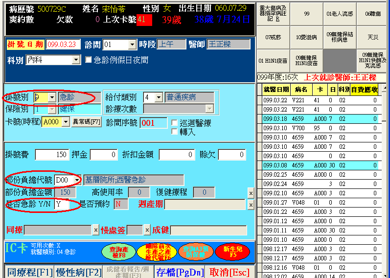 2.看診:系統會視掛急診之案件,先自動帶出01及02的醫令,且01及02醫令會自動